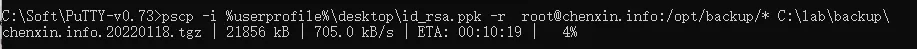 pscp -i %userprofile%\desktop\id_rsa.ppk -r root@abc.com:/opt/backup/* C:\lab\backup\