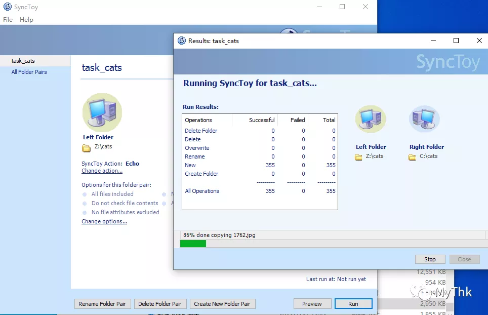 SyncToy在创建了目录对以后,除了在GUI中手动执行任务,也可以在命令行中用命令来对指定的目录对进行同步,不过缺点是无法实时监控。