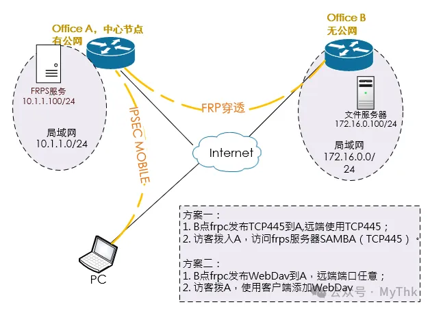 点到点IPSEC参考:部署基于IPSEC Site-to-Site扩展的多点网络互联。IPSEC Mobile参考:pfSense搭建基于IKEV2的IPSEC远程连接服务(EAP-MSCHAPV2)。新的数据链路使用FRP穿透互联AB,其它部分无变化。