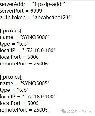 群晖默认WebDav端口是TCP 5005和5006。办公室B的frpc配置如下: