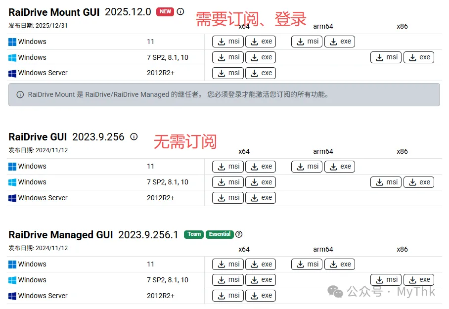 RaiDrive下载链接:https://www.raidrive.com/download,记得选RaiDriveGUI,当前最新版本是2023.9.256。